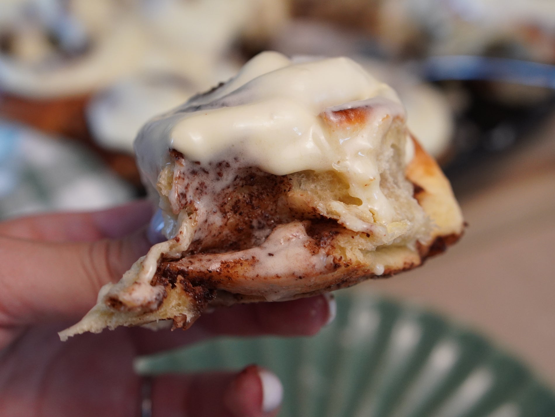 Bred glasyren på de avsvalnade rullarna. Njut av dessa kladdiga, perfekta kanelbullar!